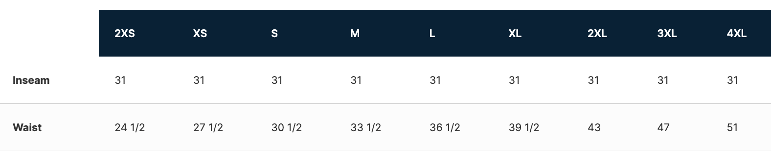 - 31-inch inseam